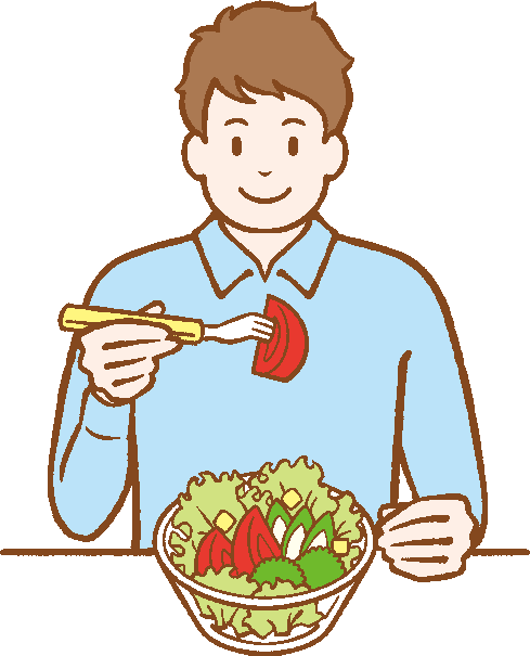 食事 糖質(炭水化物)をとりすぎないように注意し、野菜や肉・魚も含め
