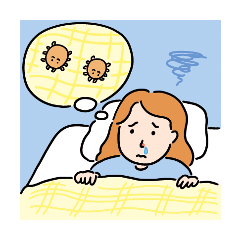 □ 寝具やクッションはこまめに日光や風にあてる・乾燥機にかけるなどして乾燥させる